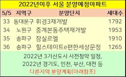 아래 2022년 서울 분양예정 아파트들 표로 만들어서 정리해놨습니다.