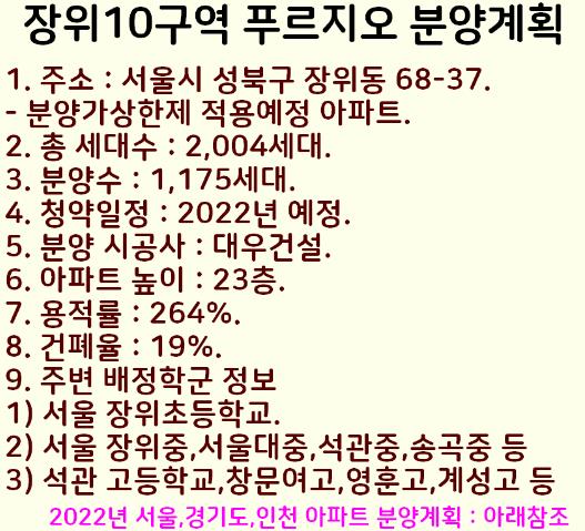 장위10구역 푸르지오 아파트 분양계획을 정리해서 알려드렸습니다.
