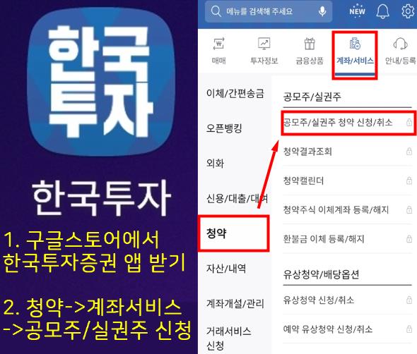 상장 주관사인 한국투자증권에서 공모주 청약 신청합니다.