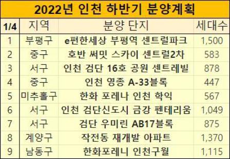 2022년 인천 아파트 분양계획(하반기 청약일정)