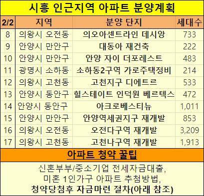 2023년 경기도 시흥시에서 분양예정인 아파트들을 표로 정리해서 알려드렸습니다.