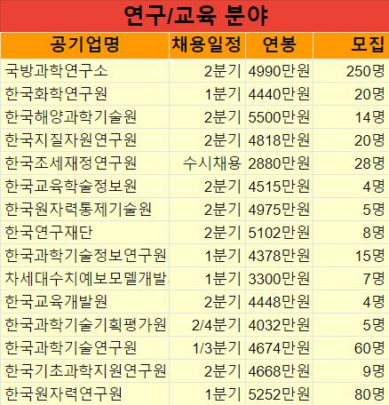 연봉(신입 초봉)과 모집 인원도 같이 적어놨으니 참고하세요.