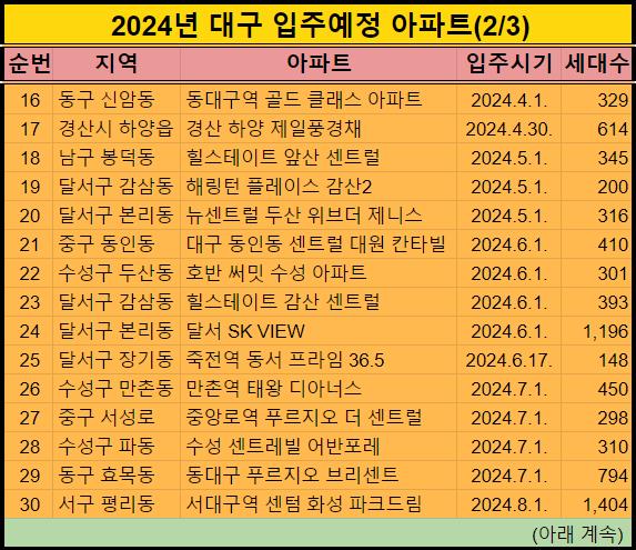 2024년에 대구광역시에 입주예정인 아파트들 46곳을 모두 정리해서 알려드렸는데요.