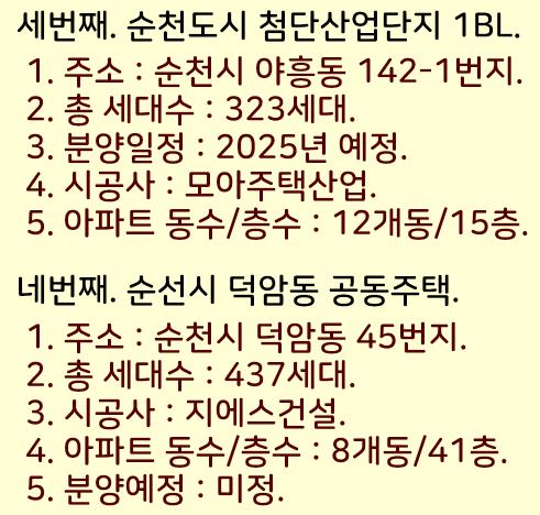 이렇게 2024년 순천에 분양하는 아파트들을 알려드렸습니다.