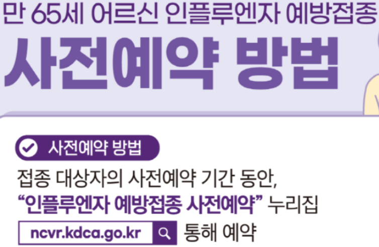 이번에 만65세이상 어르신은 별도로 인플루엔자 예방접종 사전예약이 가능합니다.