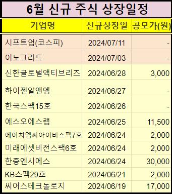 이렇게 2024년 5~6월 신규상장 주식 일정표를 정리해서 알려드렸는데요.